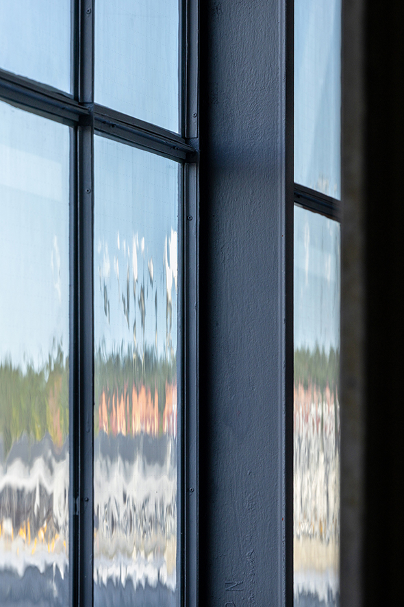 „Die schmalen FINEO Glaseinheiten passten perfekt in die filigranen Bestandsrahmen. Sie erfüllten zudem die denkmalpflegerischen Anforderungen, denn sie bilden die optischen Eigenschaften und die Struktur des historischen Glases präzise nach“, fährt Sjödin fort. Die leicht unregelmäßige Oberflächenstruktur sowie die charakteristische Reflexion entsprechen exakt dem Erscheinungsbild der Scheiben aus den 1950er Jahren. Erreicht wurde dies durch Auflaminieren eines vier Millimeter starken Restaurierungsglases von SCHOTT auf 9,5 Millimeter starkes „FINEO 10“, was einer Gesamtdicke der neuen Elemente von nur 13,5 Millimetern entspricht. Die Isolierglaseinheiten bestehen aus zwei Scheiben extra klarem Clearvision Glas von AGC, das sich durch eine besonders hohe Lichtdurchlässigkeit auszeichnet.