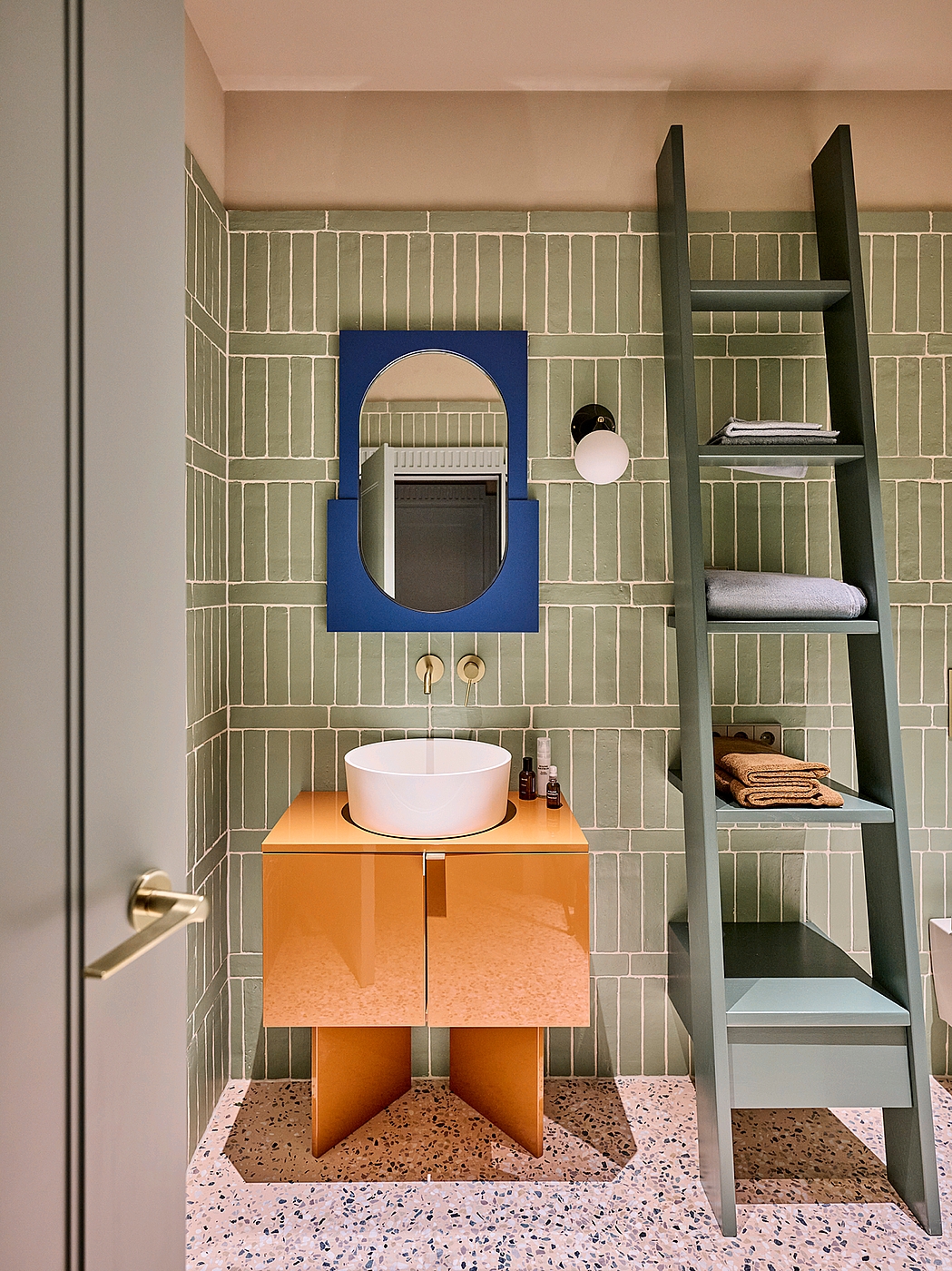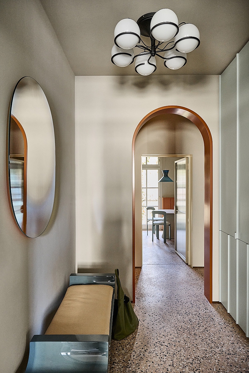 Wie präzise sich VIA MyTerrazzo in anspruchsvolle Raumkonzepte integrieren lässt, zeigt das Projekt des Münchner Interior-Designstudios Stephanie Thatenhorst. Eine Altbauwohnung wurde dort in eine wohnliche Designlandschaft verwandelt – geprägt von maßgefertigten Möbeln, kräftigen Farben und handverlesenen Materialien. Ein rosafarbener Terrazzo mit farbigen Gesteinskörnungen verbindet Küche, Flur und Bad zu einem harmonischen, flächigen Ensemble – und wird zur Bühne für die individuelle Einrichtung.