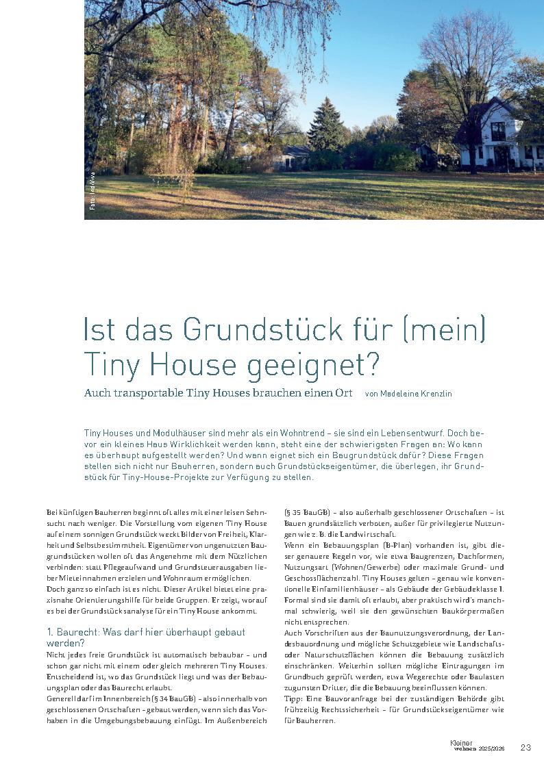 Fachbeitrag: Ist das Grundstück für (m)ein Tiny House geeignet?